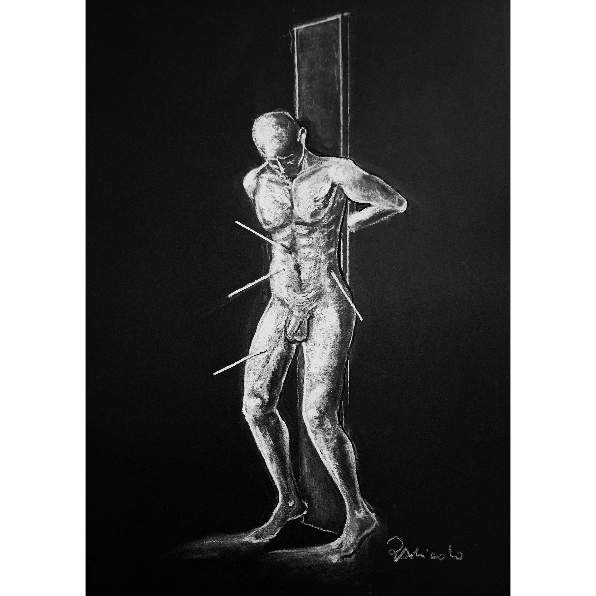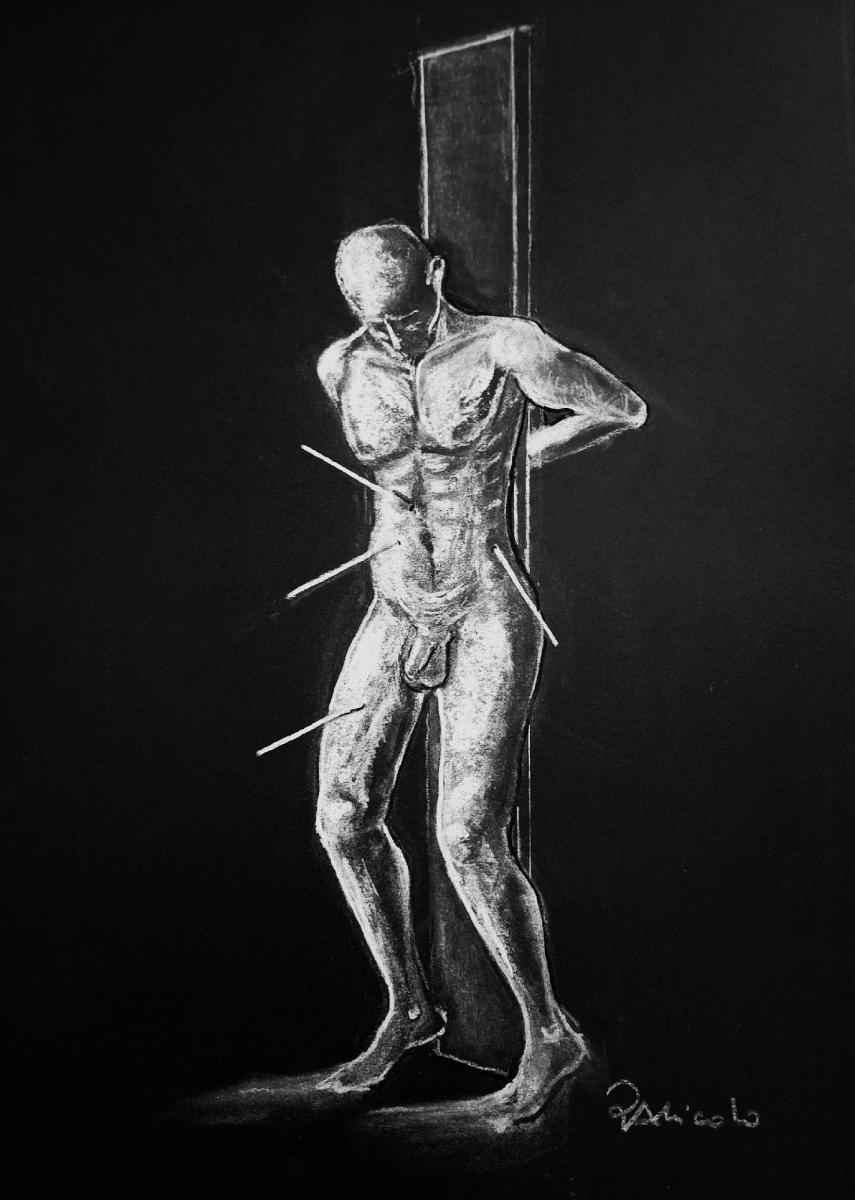 L'opera costituisce la personale interpretazione del martirio di San Sebastiano che viene raffigurato non nella sua veste di Santo ma come uomo.L'artista ha indagato aspetto ed emozioni umane, allontanandosi dalle rappresentazioni canoniche del Martire.